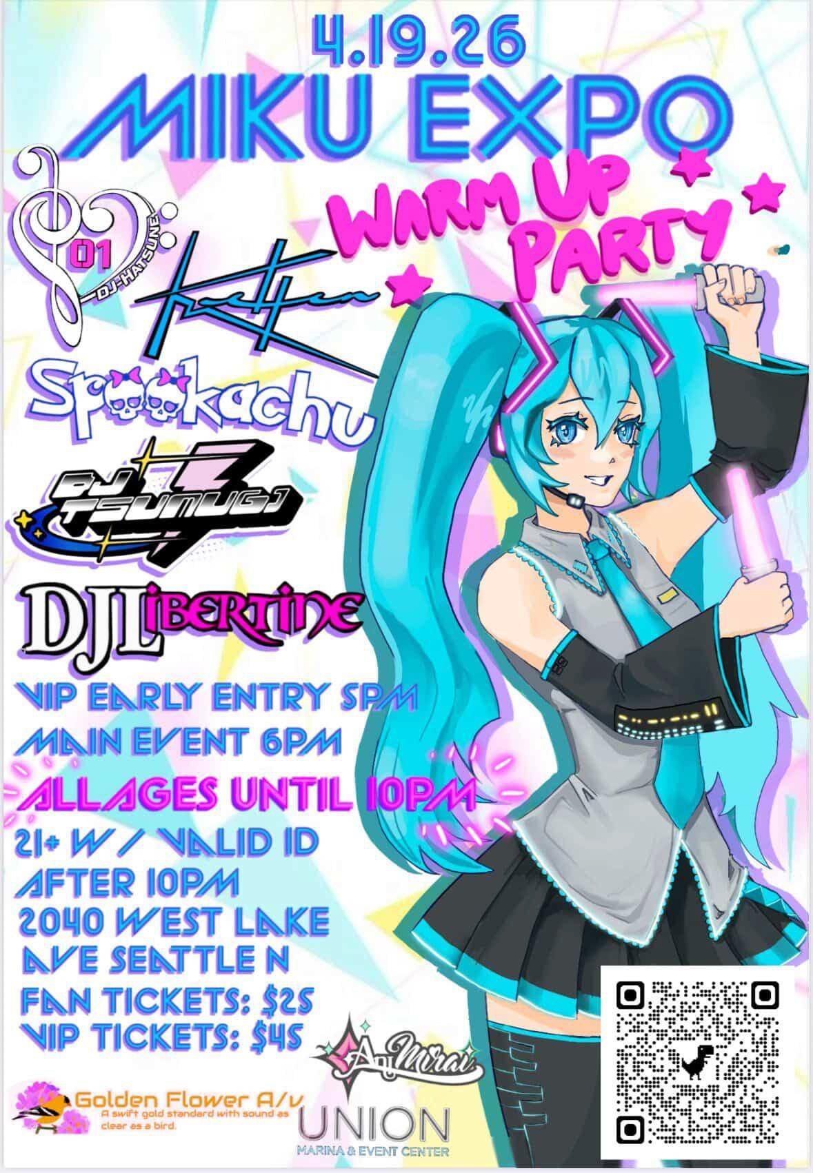 Before the lights rise on Miku Expo in Seattle, come gather with fellow fans for a night of Vocaloid and anime music! This is an unofficial Miku Expo Warm-Up Party, lovingly created as a space for fans to connect and celebrate the most famous vocal synth idol herself to get ready for the concert!